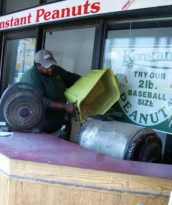 Peanuts are indigenous to Brazil. During the Atlantic slave trade the Portuguese introduced them to West and Central Africa where they used them as part of the rations they gave to enslaved Africans. Seeing an economic opportunity African farmers began planting them in their fields and selling them to those seeking food for the Atlantic slave trade. In Africa and the Americas peanuts became something of a candy that people regularly snacked on, that became the case in the south where people boiled them with salt and roasted them.